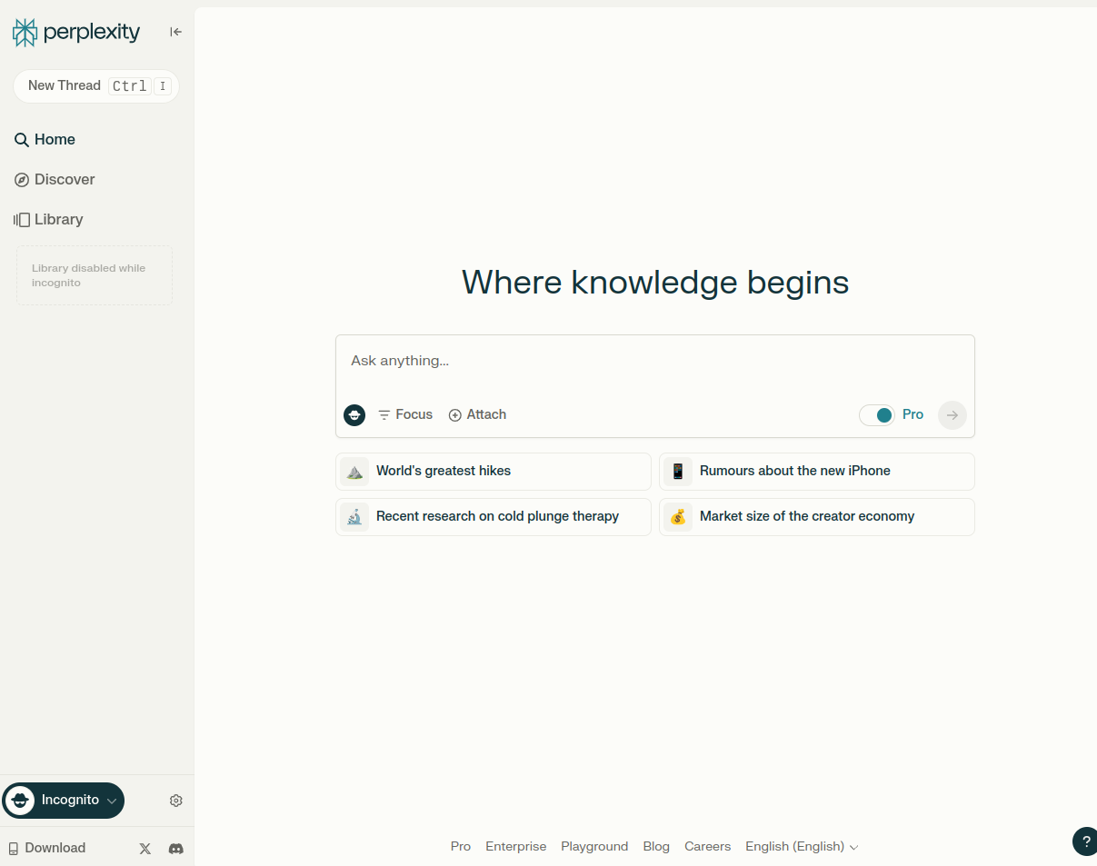 Чтобы начать, просто откройте сайт Perplexity AI ( https://www.perplexity.ai/ ). Вы можете сразу же задать свой первый вопрос. Он невероятно удобен в использовании и работает по принципу поисковой системы, но с более мощными возможностями.