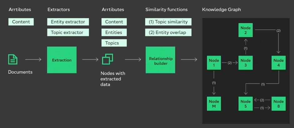 - работает на основе графа знаний, что позволяет моделировать сложные связи между документами.