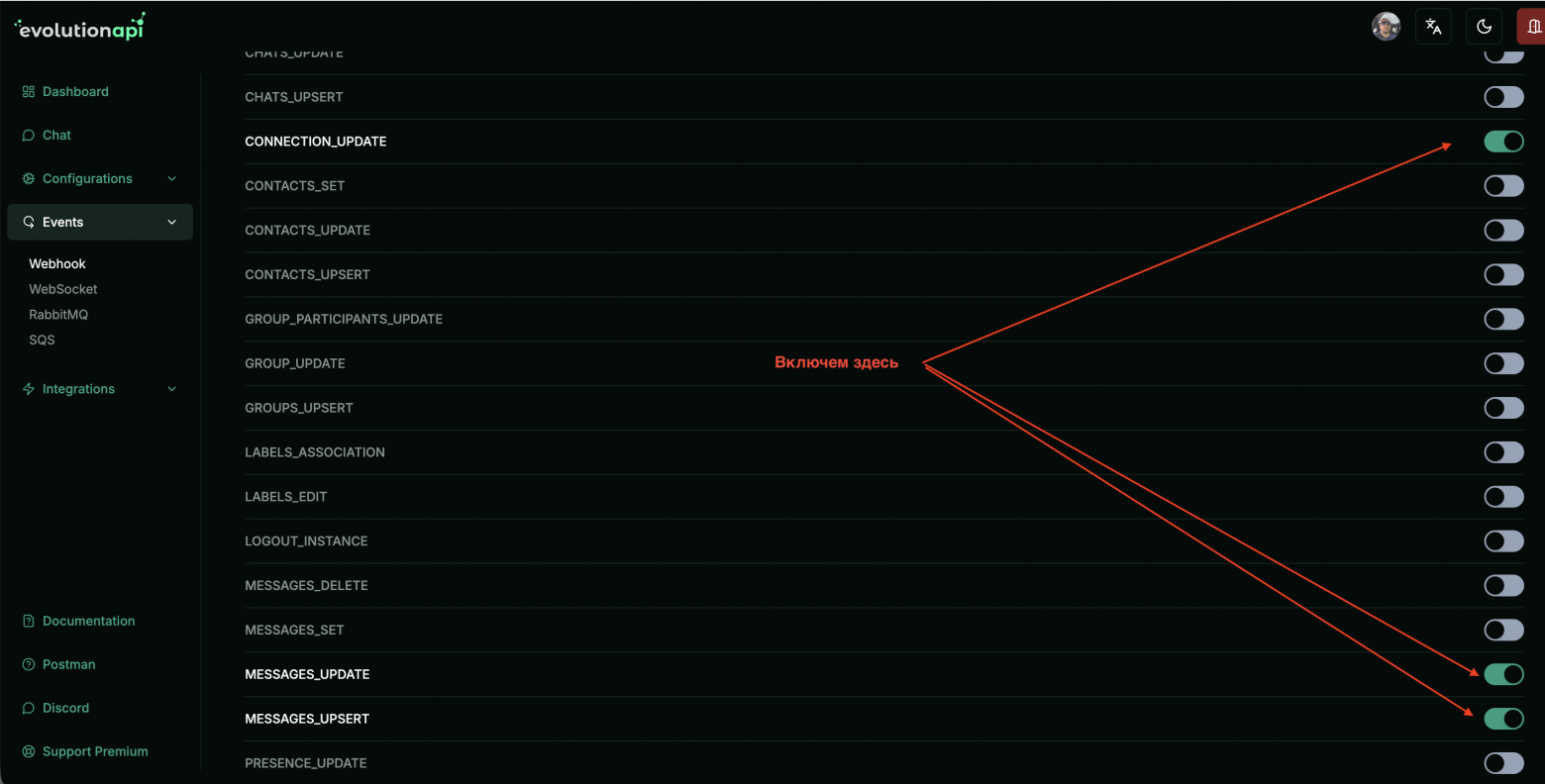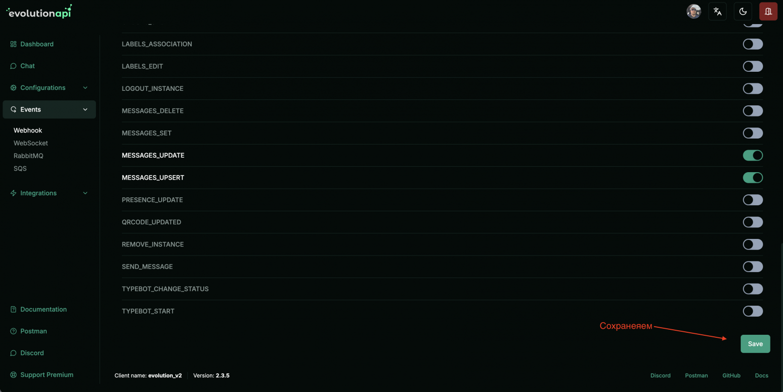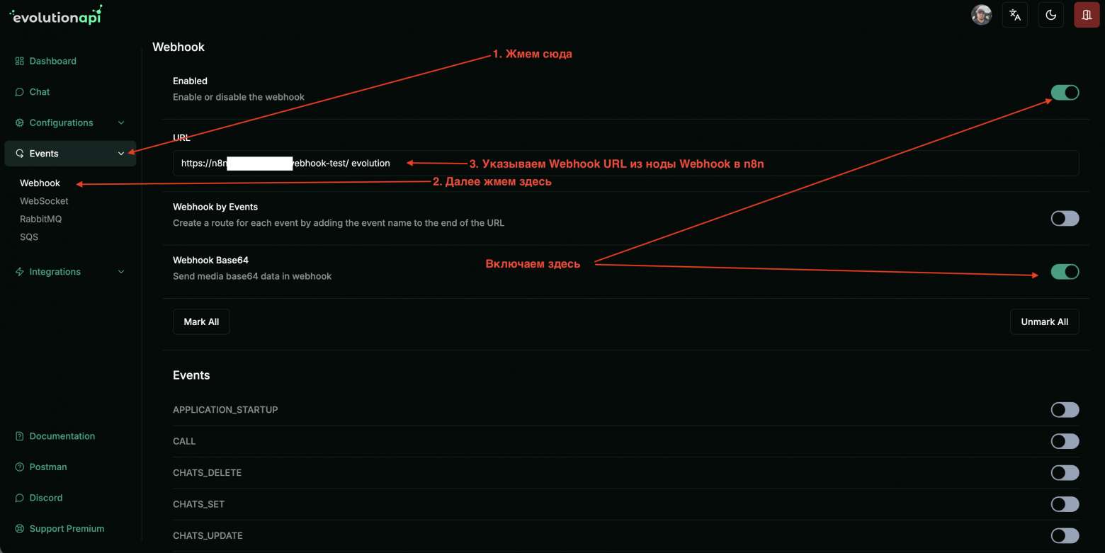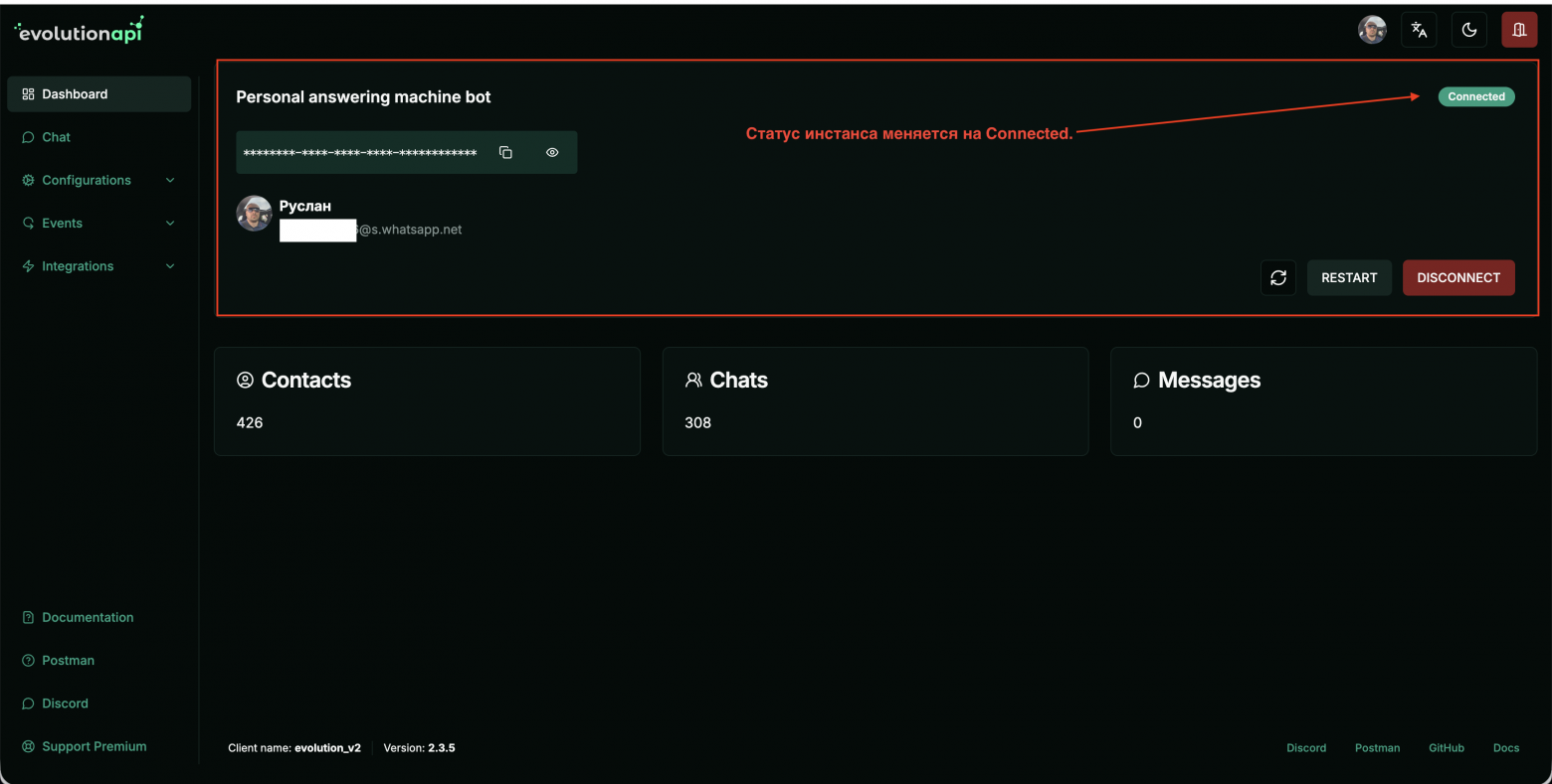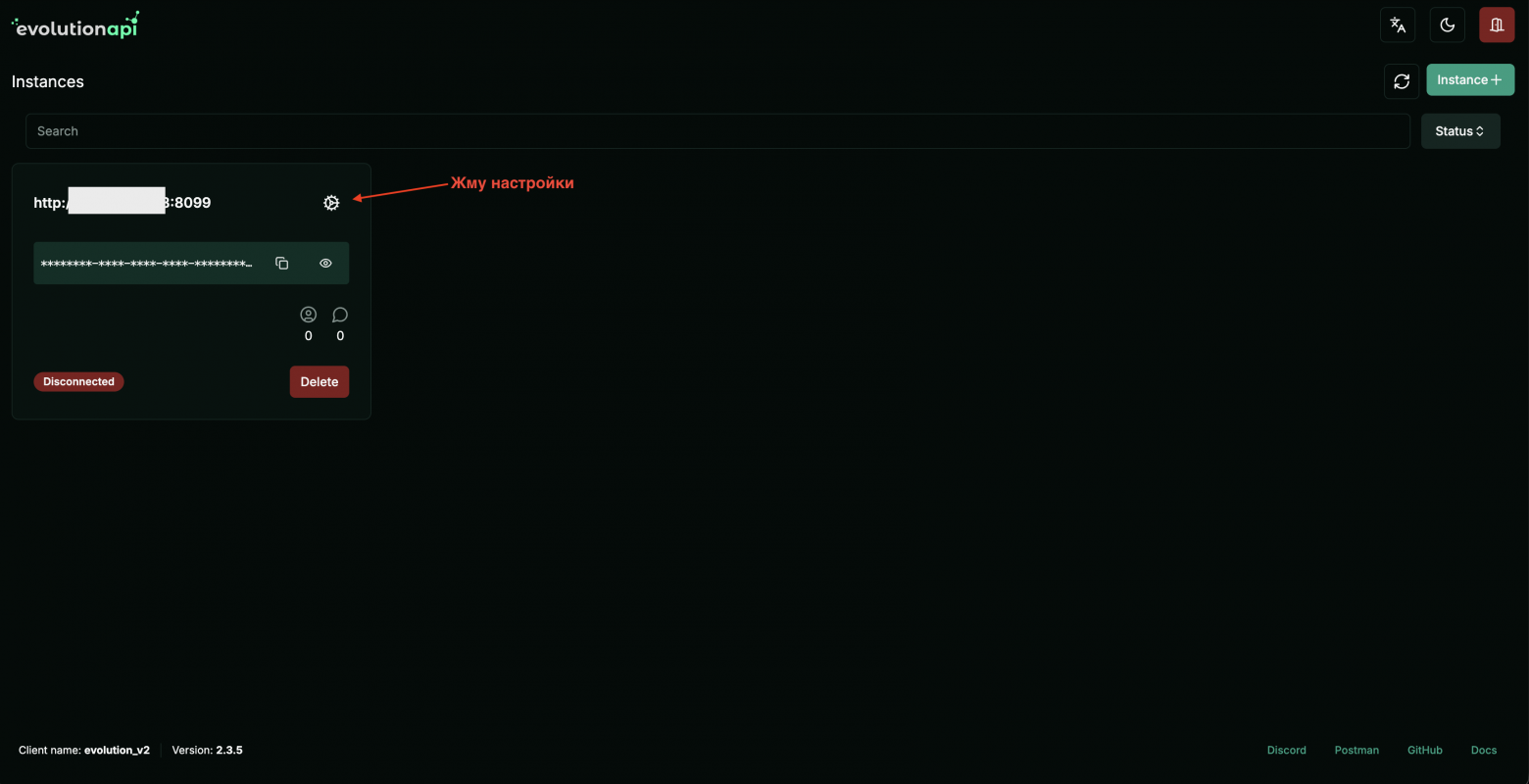 Важно! Замените ваше_имя_инстанса на точное имя инстанса, которое вы создали в Evolution Manager (например, business-bot или Personal answering machine bot). Не используйте переменные в имени инстанса в URL — только статическое названи