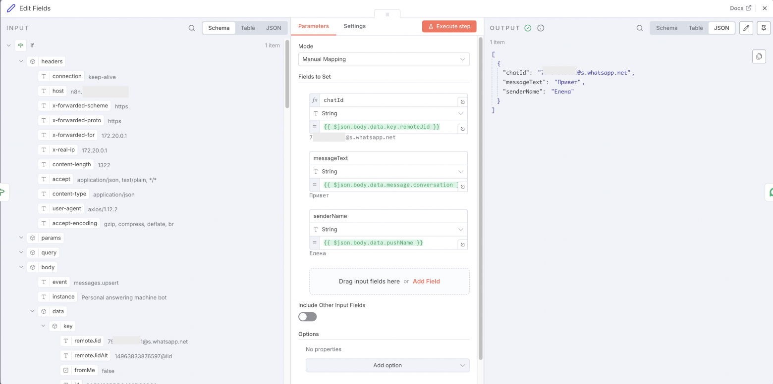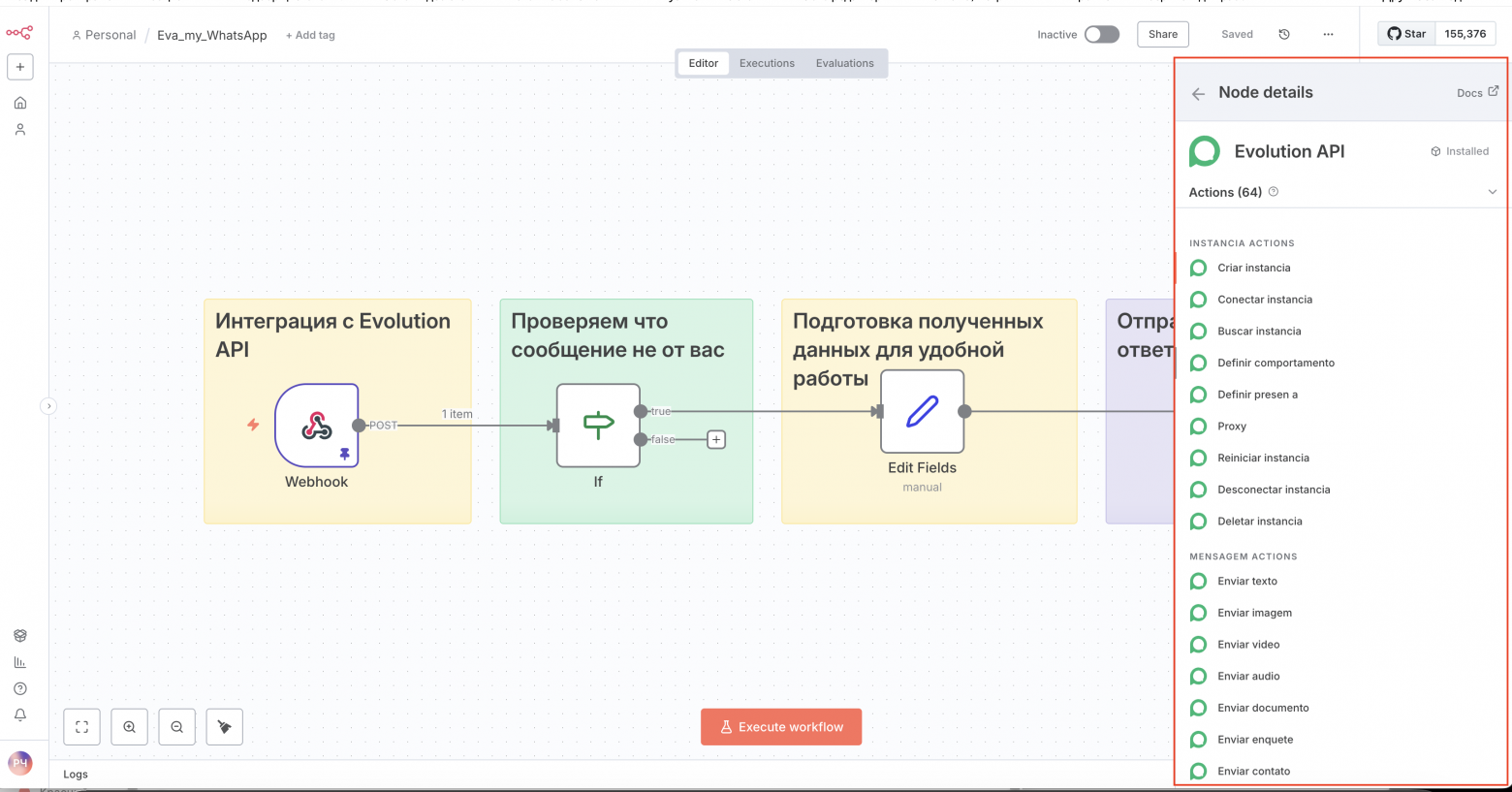 Вариант 1: С использованием Evolution API node (рекомендуется)