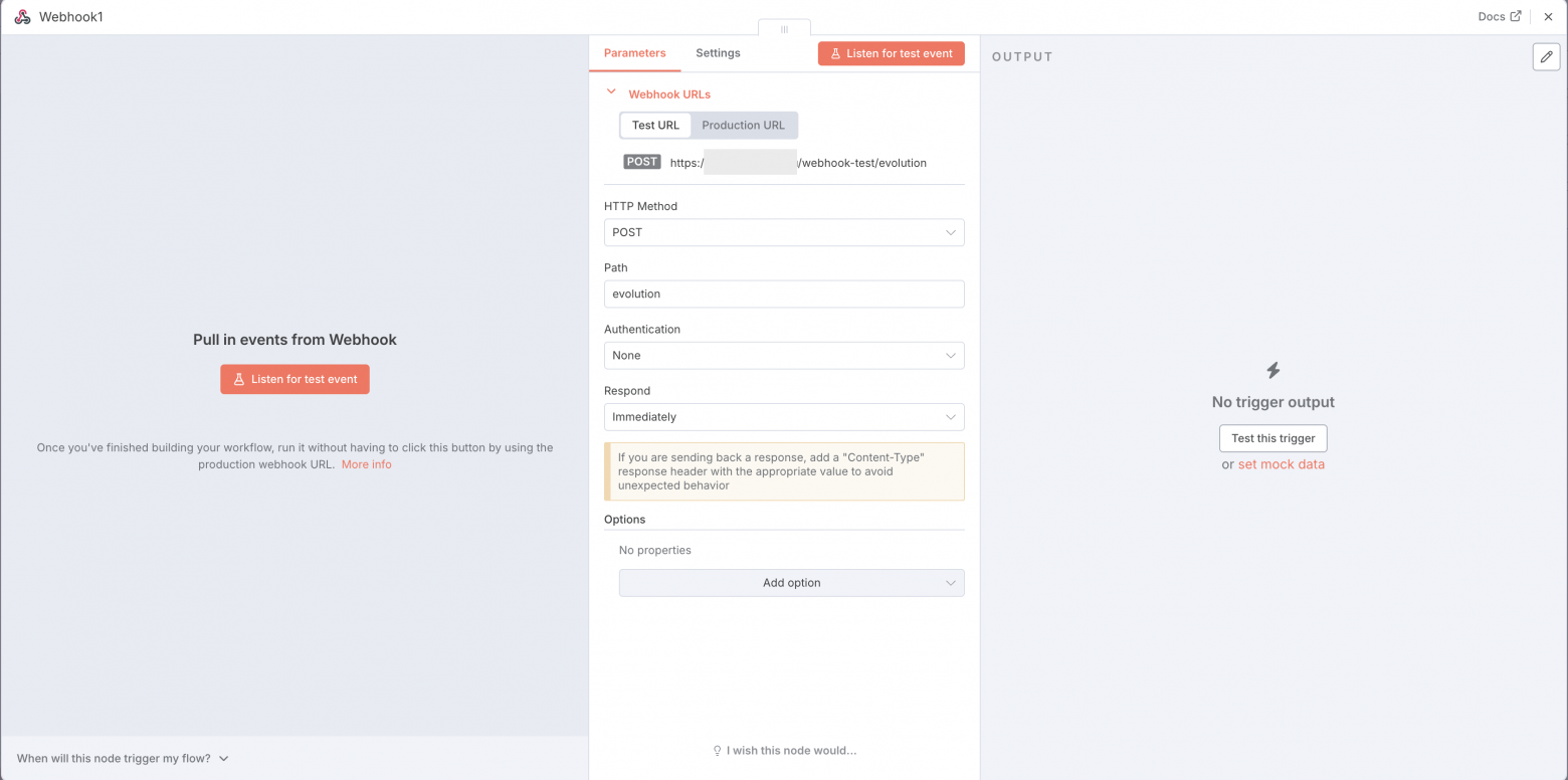 Добавляю ноду HTTP Request для отправки ответа через Evolution API: