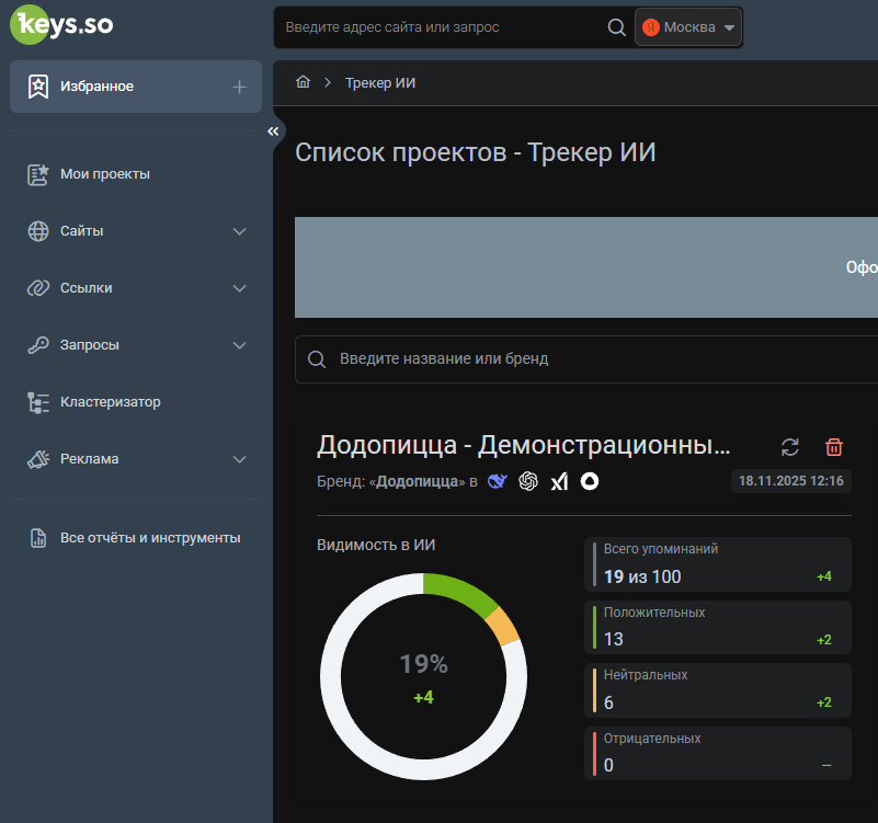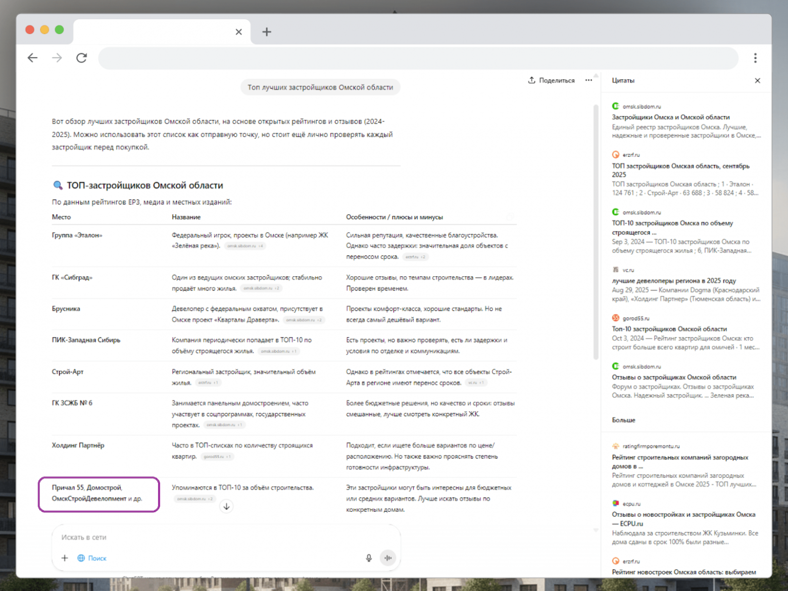 По сути, на этом этапе вы получаете объективную картину: как попасть в нейроответы по ключевым запросам уже сейчас и в какой степени ваш бренд вообще присутствует в выдаче нейросетей по своим темам.