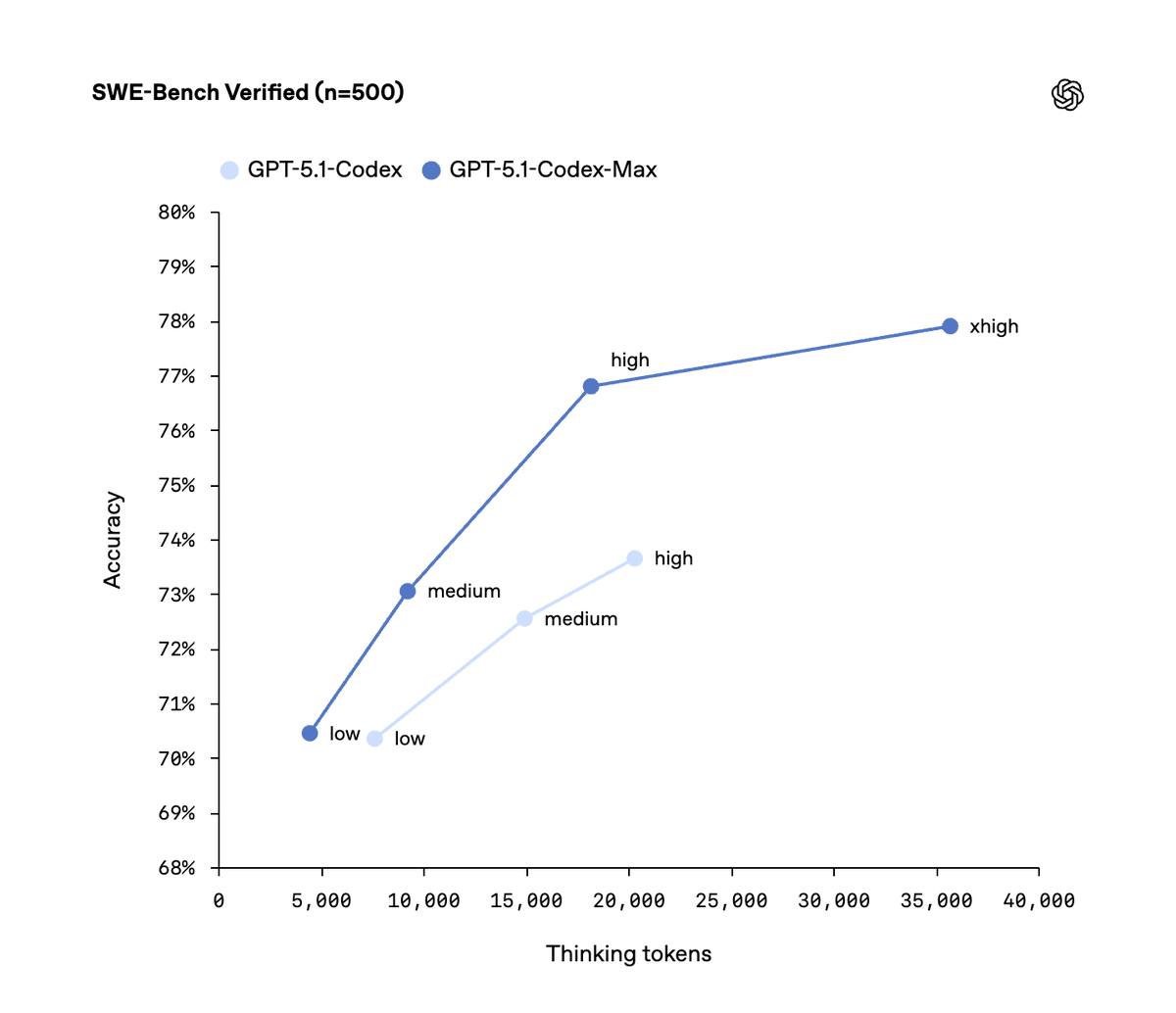 OpenAI выпустили GPT-5.1-Codex-Max — новую модель для автономного кодинга и агентных задач.