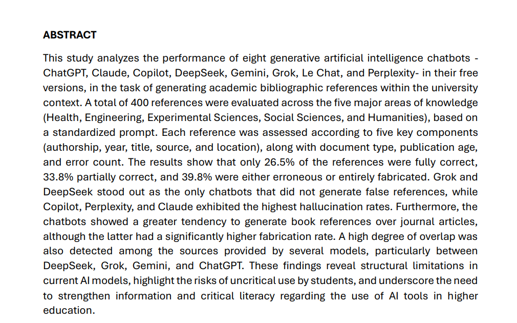 С другой стороны, в исследовании Assessing the performance of 8 AI chatbots in bibliographic reference retrieval, посвящённом проверке способности сервисов формировать академические библиографические ссылки, Perplexity оказался одним из худших по части фабрикации ссылок.