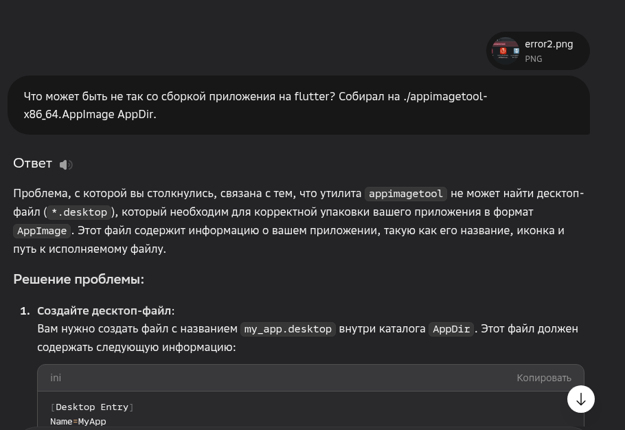 Далее перехожу к самому главному исследованию — сборке приложения под Linux. Мне нужно понять, насколько этот процесс удобен во Flutter. Для эксперимента я решил выбрать формат AppImage.
