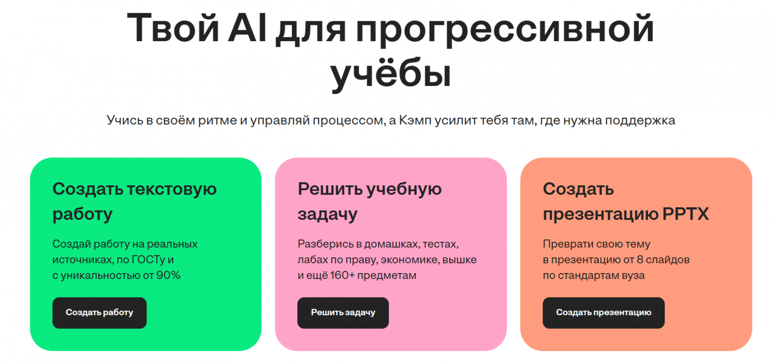 Главное преимущество Кэмп заключается в его обучающей выборке. Модель обучена на 2 миллионах реальных академических работ. Это означает, что:
