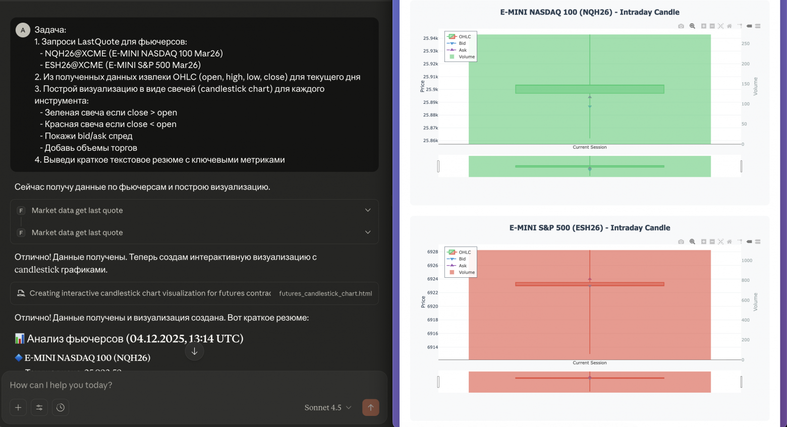 Помимо Market Data, Trade API предоставляет еще много возможностей: анализ портфеля, данные об инструментах, управление ордерами — которые тоже можно подключить к ИИ. Следите за обновлениями.