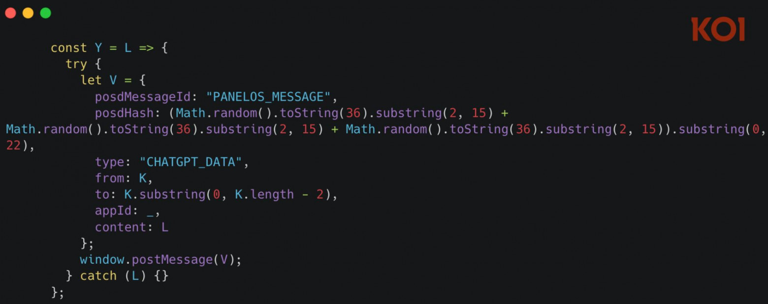 В результате все взаимодействие между браузером и ИИ-ботами осуществляется не через легитимные API браузера — в данном случае fetch() и HttpRequest — а через исполняемый скрипт. Расширения в конечном итоге сжимают данные и отправляют их на конечные точки, принадлежащие разработчику.
