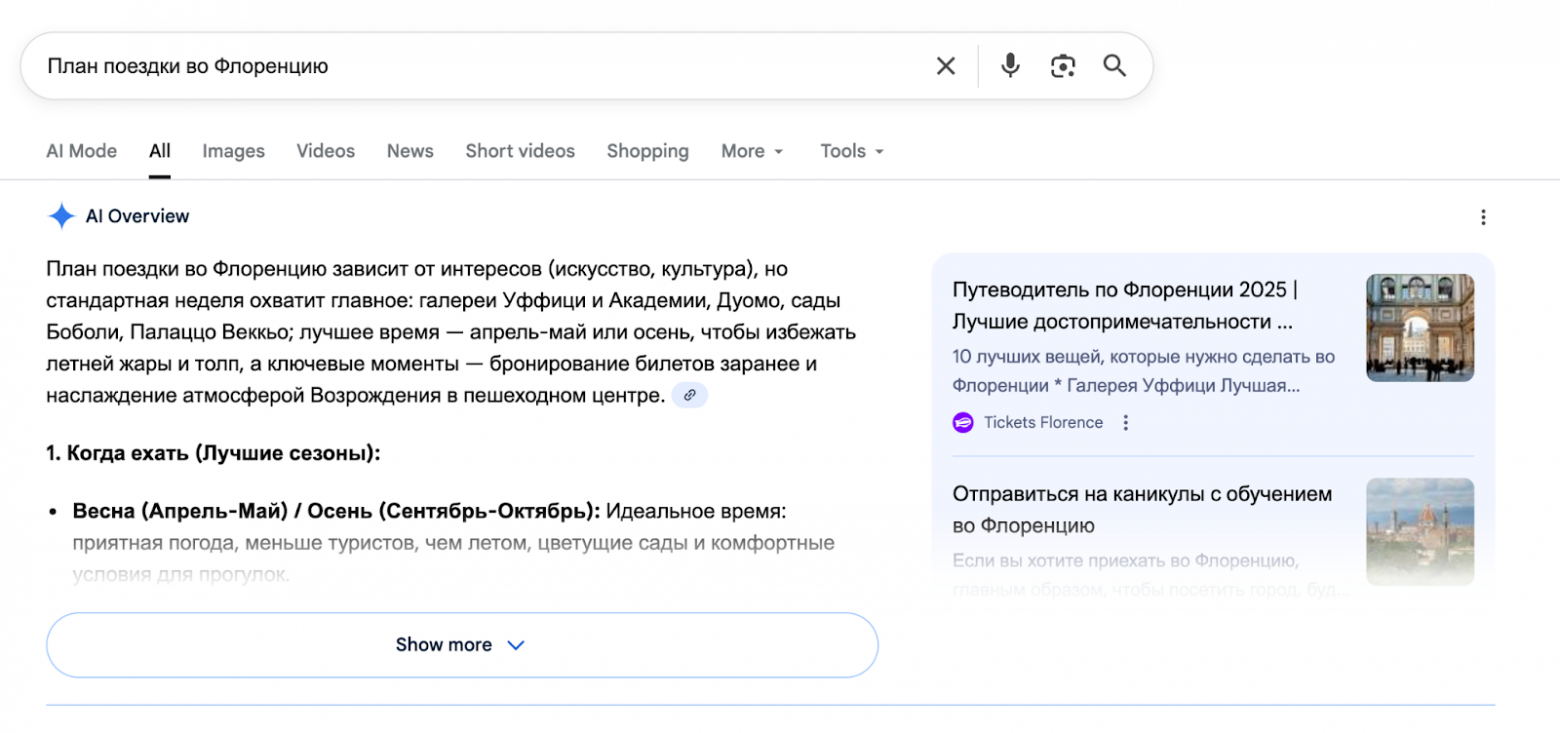 #2 — Google Gemini (Dynamic Interfaces): Google внедряет генеративный UI в поисковую выдачу. Если вы просите «План поездки во Флоренцию», система не дает список ссылок на блоги, а собирает уникальный виджет с картой, билетами и маршрутом, сверстанный специально под этот запрос. Это переход от «Поиска ссылок» к «Генерации ответов». Интерфейс адаптируется под сложность запроса: ребенку он покажет картинки и крупные кнопки, профильному специалисту — таблицы и код.