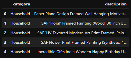 Возьмем в качестве примера датасет с Kaggle, который представляет собой набор описаний товаров, каждый из которых отнесен к одному из классов: