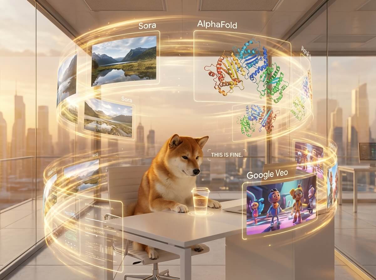 В какой‑то момент в 2025‑м стало ощущаться, что “просто чат с текстом” — это уже вчерашний день. Если в первом акте мы говорили про верхнюю планку качества ответов, то дальше интересное начинается там, где модели перестают быть чисто текстовыми и начинают видеть, слышать и моделировать мир — от коротких роликов до белковых структур. И тут внезапно выяснилось, что главное событие года — не отдельная демка, а то, что из этого всего можно собрать стабильные производственные процессы.