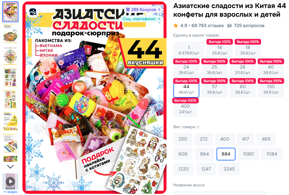 Я закупил для этого на озоне «наборы китайских сладостей». Там целый коробок пришёл абсолютно разных радостей. Взял два коробка, чтобы не было криков «Я хочу такую! Нет, это моя!». Два ребенка, всё ж.