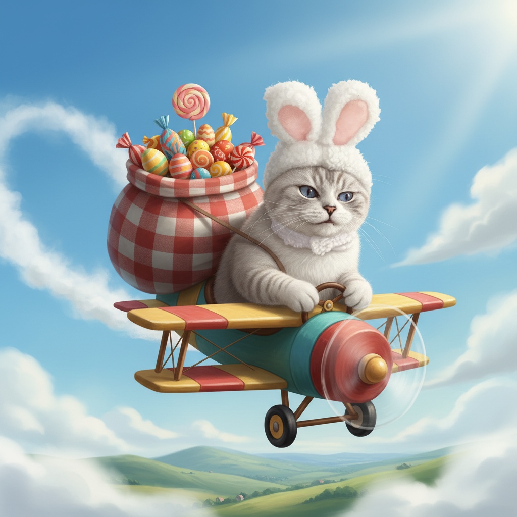 Нарисуй этого кота так, как будто он едет на крайнем севере на красном грузовичке, который загружен подарками.