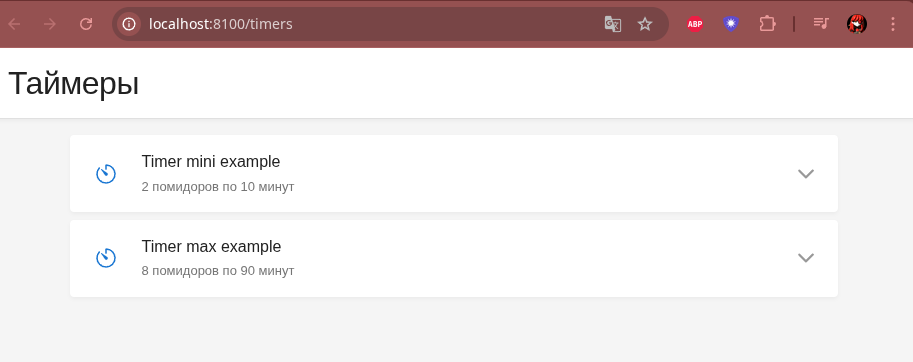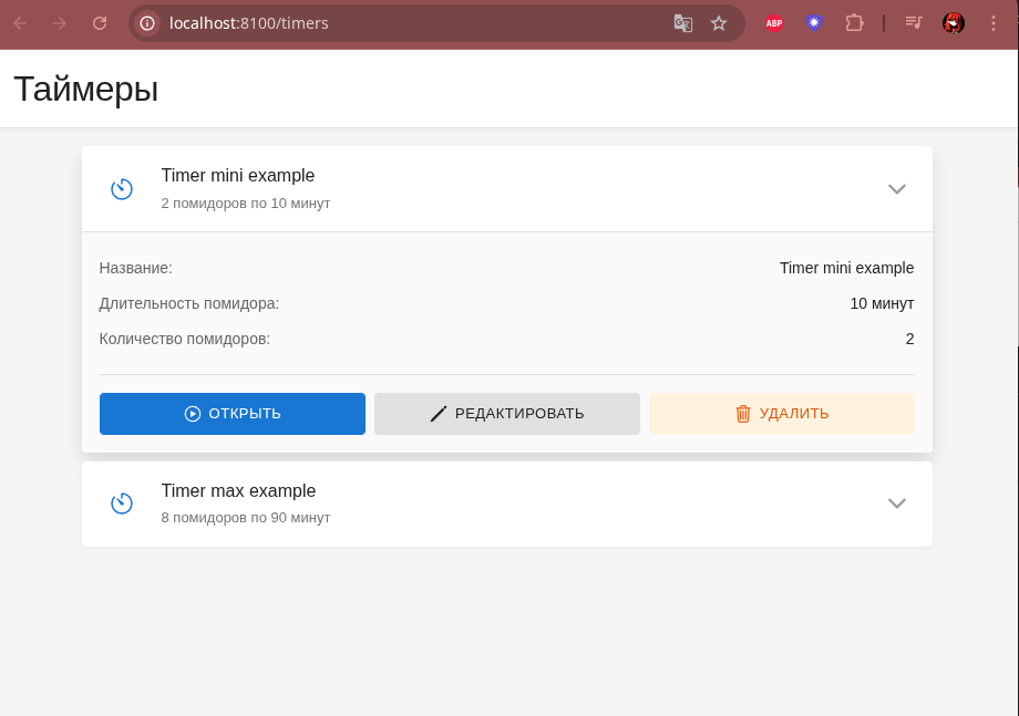 Пока единственное действие, которое можно выполнить на странице таймеров, — развернуть информацию о таймере. Интересный момент: если развернуть другой таймер, первый будет сворачиваться автоматически. Это позволяет сократить путь пользователя и не держать большое количество раскрытых таймеров одновременно.