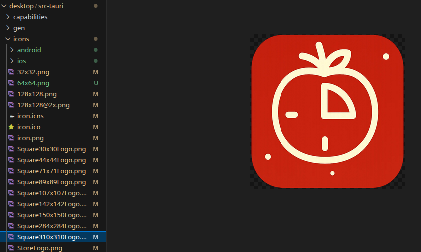 После выполнения команды в папке icons дефолтные иконки заменились на мои иконки с помидорками.