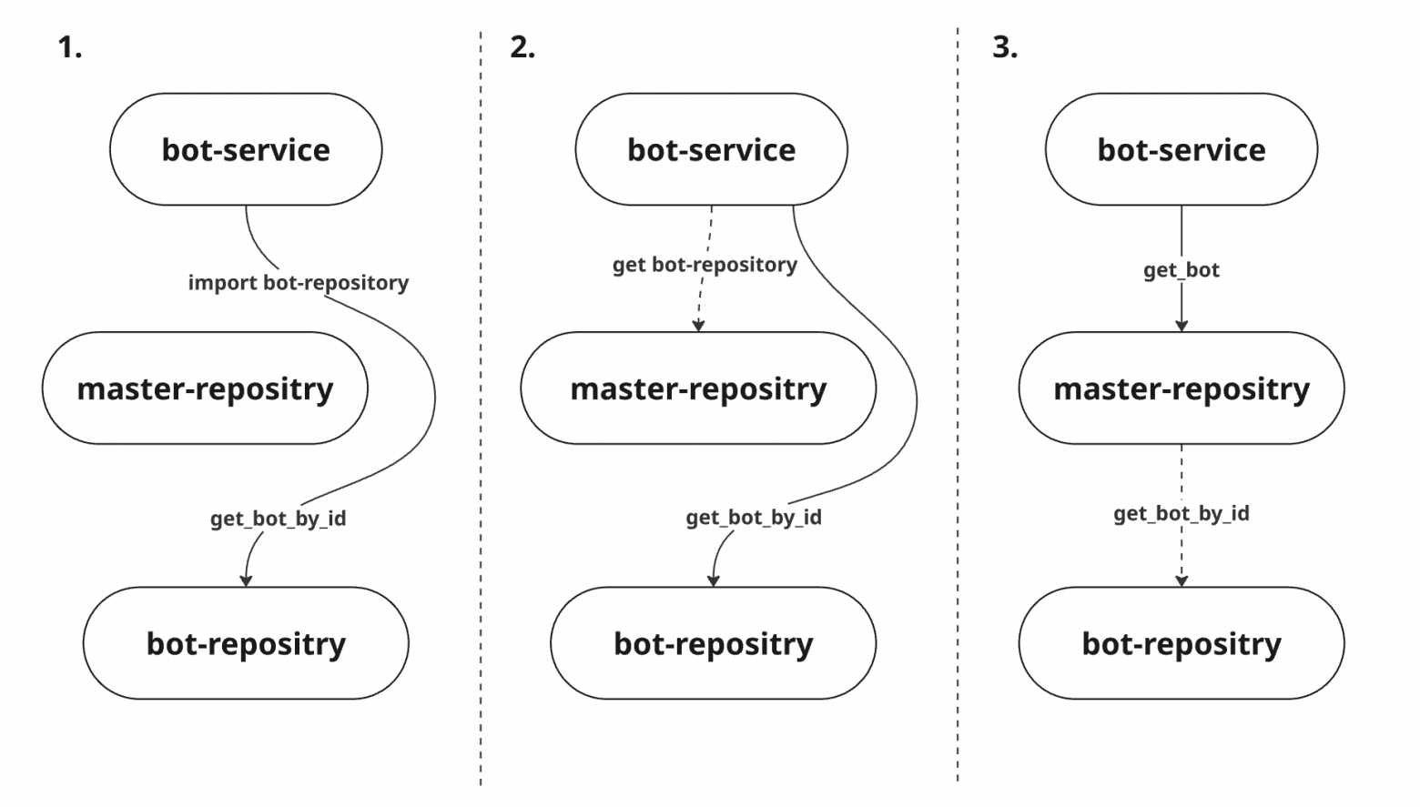 Self-service управление — клиенты управляют своими ботами через мастер-бота: синхронизация сценариев, изменение настроек, просмотр статистики. Все операции выполняются через сценарии — не нужно предоставлять доступ к коду или серверу.
