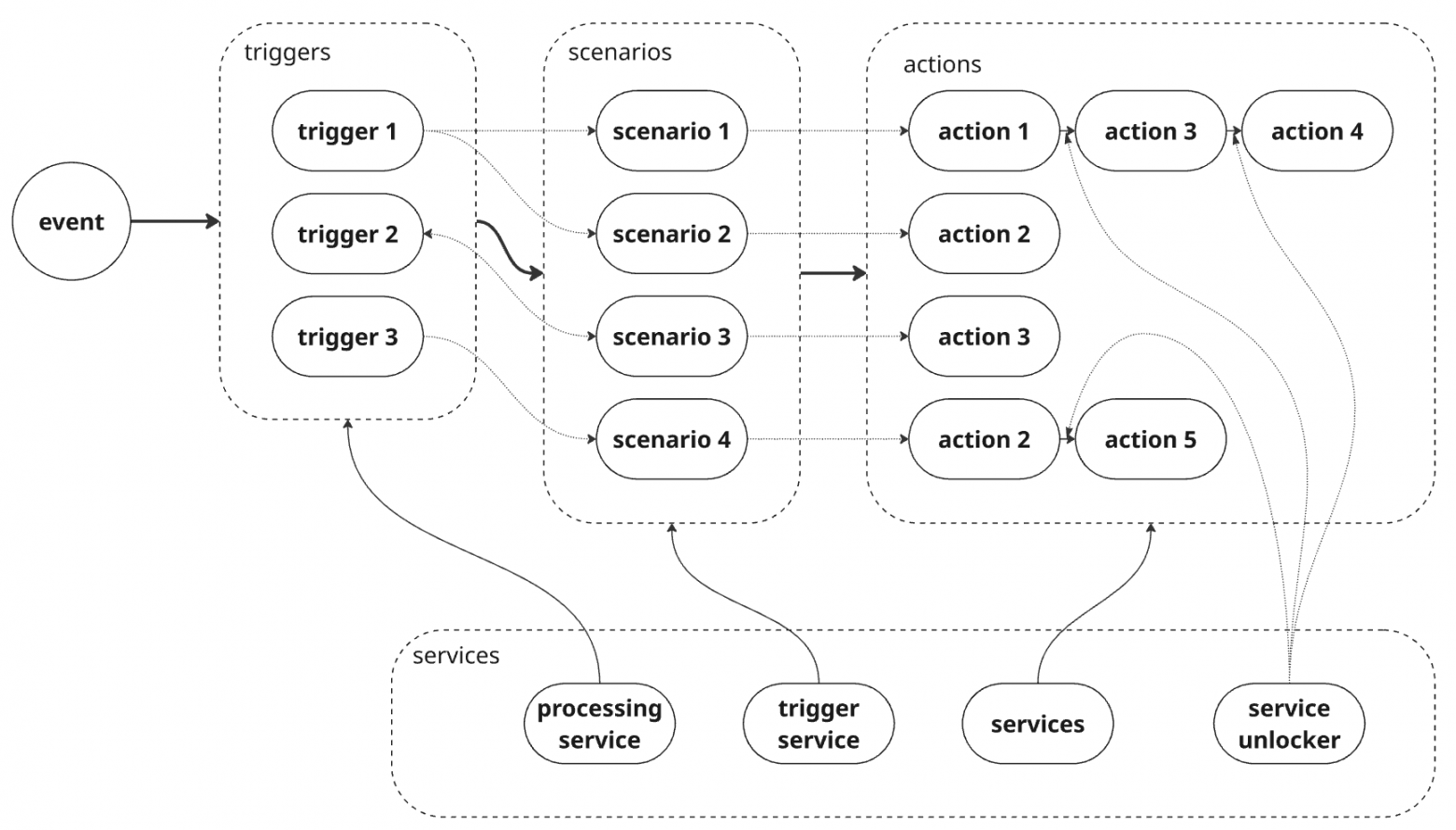 Сценарии, триггеры, transitions, placeholders — всё это превратилось в конструктор, где можно собирать ботов любой сложности без правки основного кода.