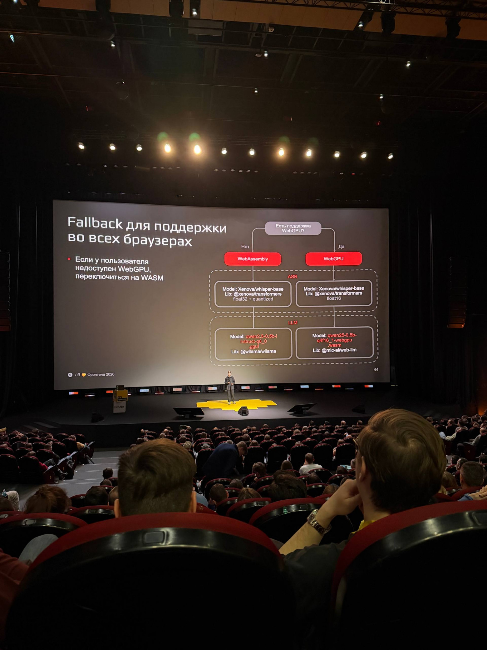 Я ? Фронтенд 2026 от Яндекса — ежегодная фронтенд-конференция, которая прошла 14 февраля 2026 года в гибридном формате (Москва + онлайн-трансляция). Разработчики и дизайнеры собрались, чтобы обсудить адаптивный CSS, веб-компоненты, локальные LLM в браузере через WebGPU/WebAssembly, дизайн-системы, AI и бу��ущее фронтенда.